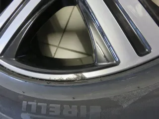 normale Gebrauchsspuren(leichte Kratzer, Steinschläge möglich) zwei Felgen mit Anschürfungen und ein Reifen mit leichtem oberflächlichen Profilbruch (siehe Detailfotos)Original: