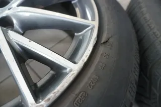 normale Gebrauchsspuren (z.B. leichte Kratzer / Steinschläge möglich) drei Felgen mit starken Bordsteinkratzern und ein Reifen mit Beschädigung (siehe Detailfotos)Original: